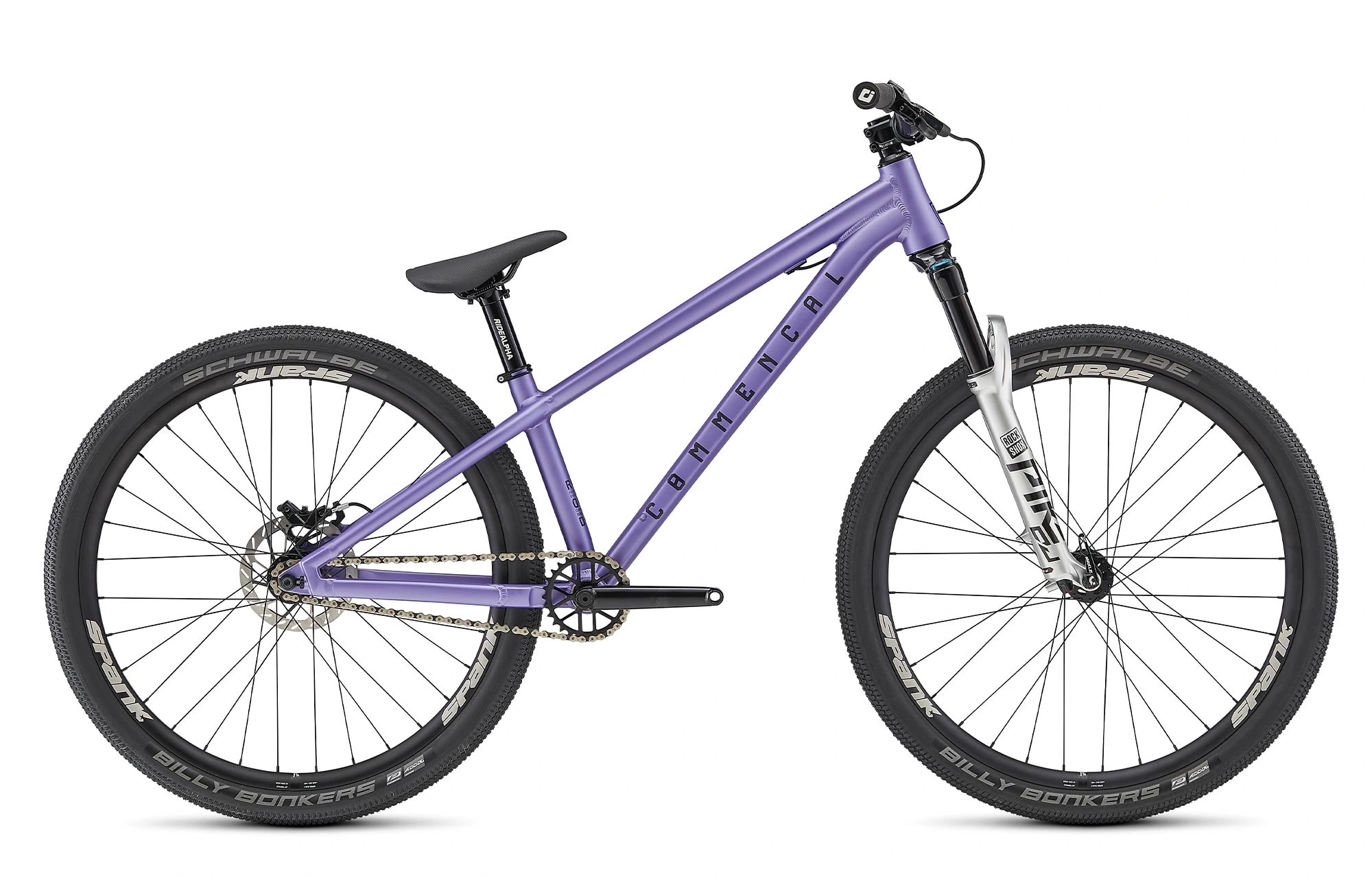 – Des pneus SCHWALBE Billy Bonkers, références en Dirt grâce à leur faible résistance au roulement et leur excellent grip latéral.