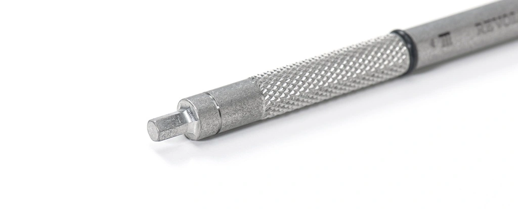 This unique tool features 3 and 4mm hex heads on either side. Designed for adjust tensioning bolts on horizontal fork ends. O-ring and knurled surface offer grip.