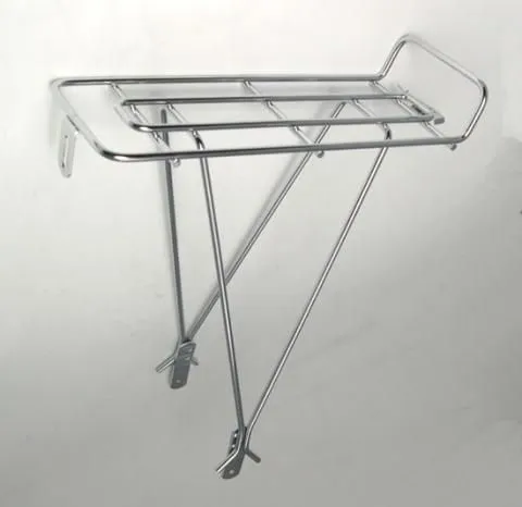– Classic rear rack with a bright chrome finish that mates up nicely with Wald and other baskets